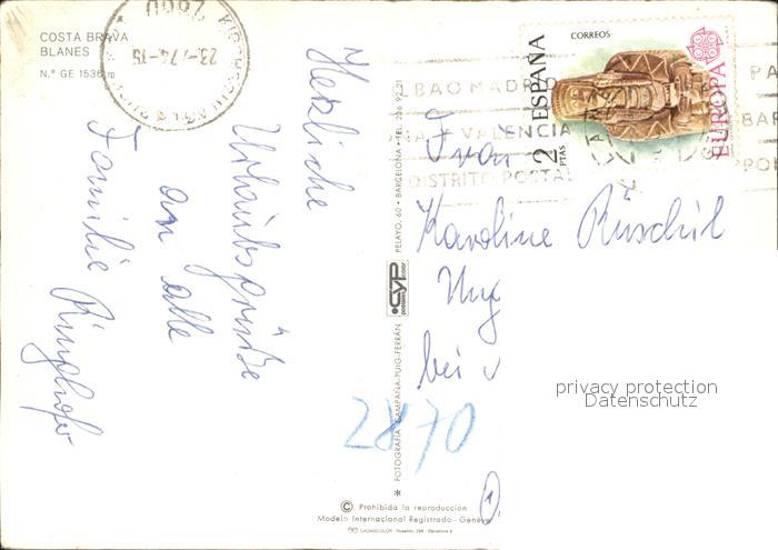 old postcard Blanes Teilansichten Kueste Strand Landkarte postalisch gelaufen Erhaltung siehe scans