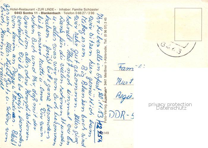 73569322 alte Postkarte Blankenbach Sontra Hotel-Restaurant Zur Linde postalisch gelaufen Erhaltung siehe scans [PaolaD17] KatCode: 11110006636011