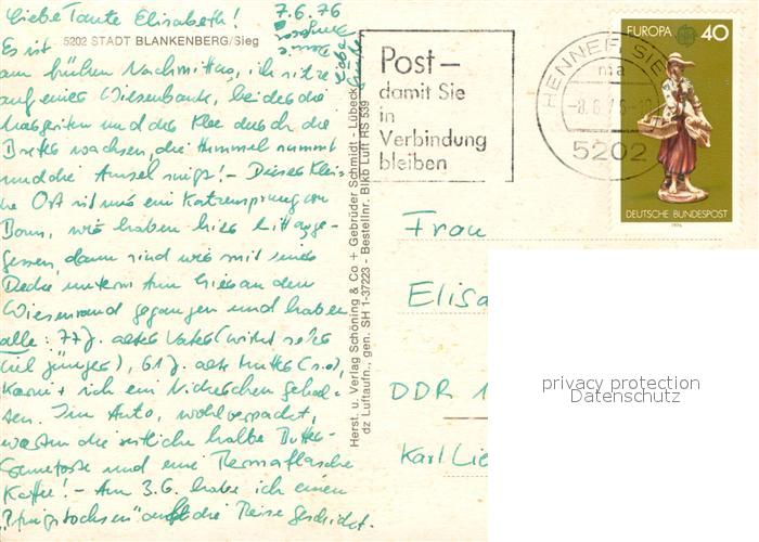 73647831 alte Postkarte Blankenberg Sieg Fliegeraufnahme postalisch gelaufen Erhaltung siehe scans [FriedD77] KatCode: 11110005382020