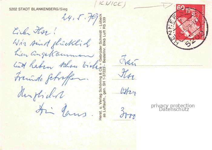 74034309 alte Postkarte Blankenberg Sieg NRW Fliegeraufnahme postalisch gelaufen Erhaltung siehe scans [FriedD77] KatCode: 11110005382020