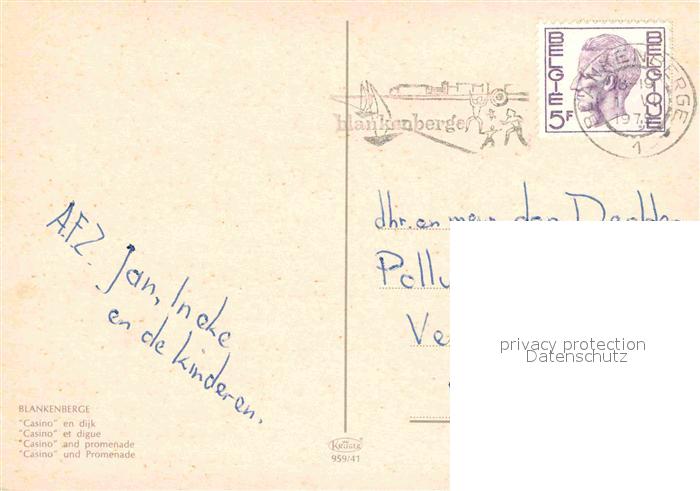 72909330 carte postale Blankenberge Casino en dijk postalisch gelaufen Erhaltung siehe scans [LiesaD40] KatCode: 11070031000052