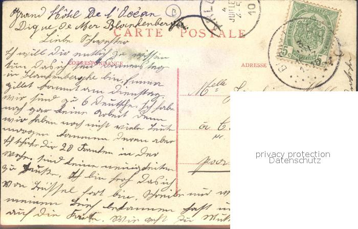 12046281 Blankenberge Grand Hotel deL Ocean postalisch gelaufen Erhaltung siehe scans Alte Ansichtskarte Postkarte carte postale Matt Katcode 11070031000052
