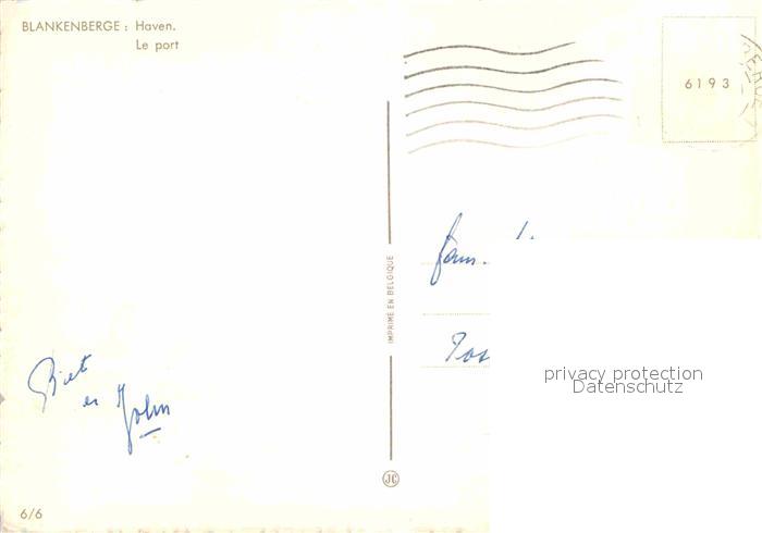 72890479 carte postale Blankenberge Hafen postalisch gelaufen Erhaltung siehe scans [WerneD78] KatCode: 11070031000052