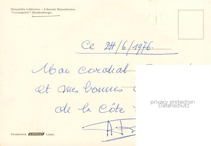 73852119 Blankenberge Liberale Mutualiteiten Cosmopolite postalisch nicht gelaufen Erhaltung siehe scans [WerneD78] KatCode: 11070031000052