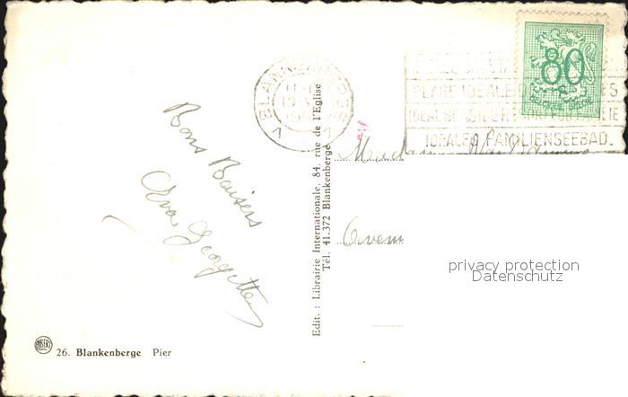 72390663 carte postale Blankenberge Pier postalisch gelaufen Erhaltung siehe scans KatCode: 11070031000052