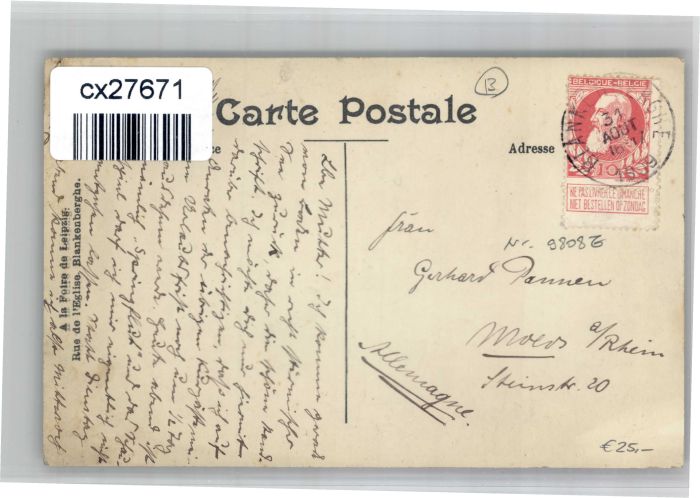 30882744 carte postale Blankenberge Rue Eglise Grand Hotel Allemagne postalisch gelaufen KatCode: 11070031000052