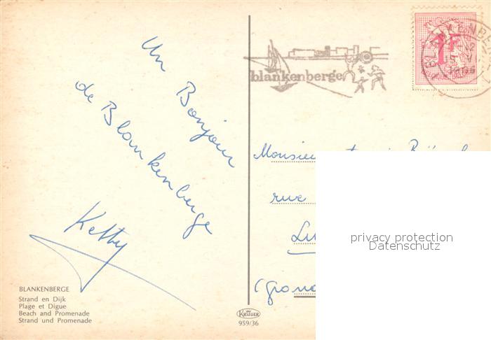 73362706 carte postale Blankenberge Strand en Dijk Promenade Hotels Wappen postalisch gelaufen Erhaltung siehe scans [FriedD77] KatCode: 11070031000052
