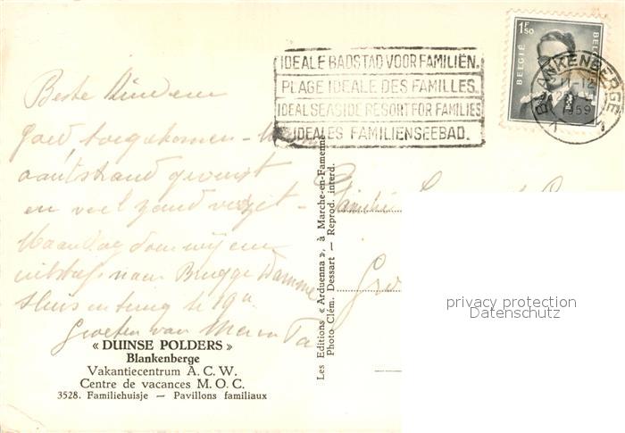 13525943 carte postale Blankenberge Vakantiecentrum ACW Familiehuisje postalisch gelaufen Erhaltung siehe scans [WerneD78] KatCode: 11070031000052