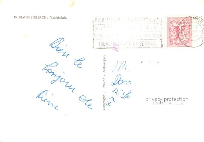 72927320 carte postale Blankenberge Yachtclub postalisch gelaufen Erhaltung siehe scans [LiesaD40] KatCode: 11070031000052