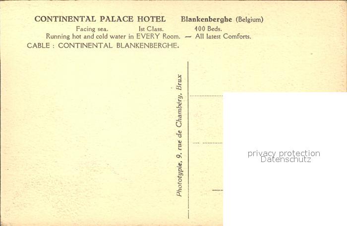 11718125 Blankenberghe Continental Palace Hotel Plage postalisch nicht gelaufen Erhaltung siehe scans KatCode: 11070031000053