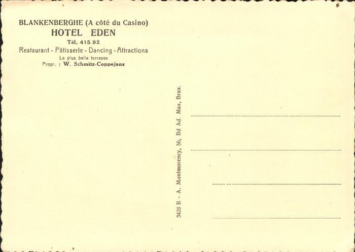 11099573 Blankenberghe Hotel Eden postalisch nicht gelaufen Alte Ansichtskarte Postkarte hz_U Katcode 11070031000053