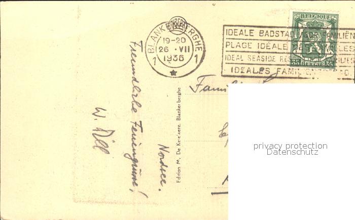 11718411 Blankenberghe Vue generale de la plage postalisch gelaufen Erhaltung siehe scans Alte Ansichtskarte Postkarte carte postale hz_F Katcode 11070031000053