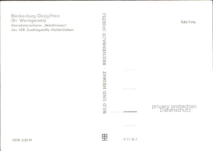 72075922 Blankenburg Harz Betriebsferienheim Waldfrieden postalisch nicht gelaufen Erhaltung siehe scans KatCode: 11110015085055