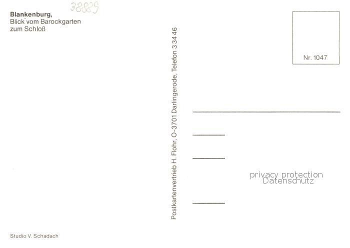73179283 Blankenburg Harz Blick vom Barockgarten zum Schloss Loewenskulptur postalisch nicht gelaufen Erhaltung siehe scans [FriedD77] KatCode: 11110015085055