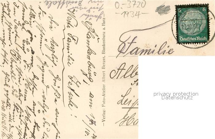 73690961 alte Postkarte Blankenburg Harz Blick zum Ort und Schloss postalisch gelaufen Erhaltung siehe scans [FriedD77] KatCode: 11110015085055