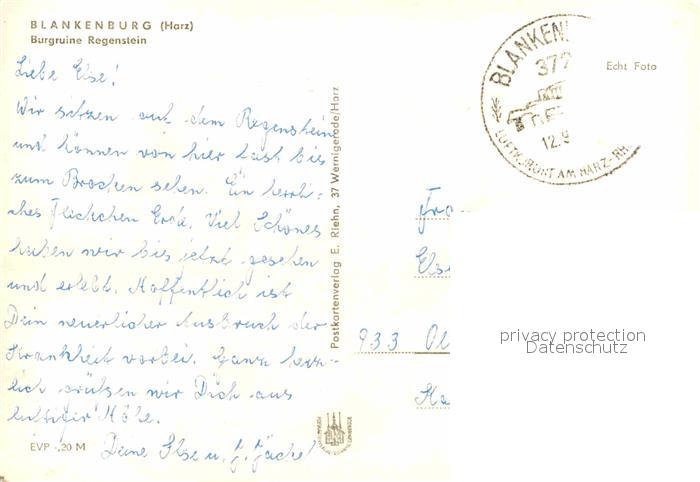 72704189 alte Postkarte Blankenburg Harz Burgruine Regenstein postalisch gelaufen Erhaltung siehe scans [AndreD76] KatCode: 11110015085055