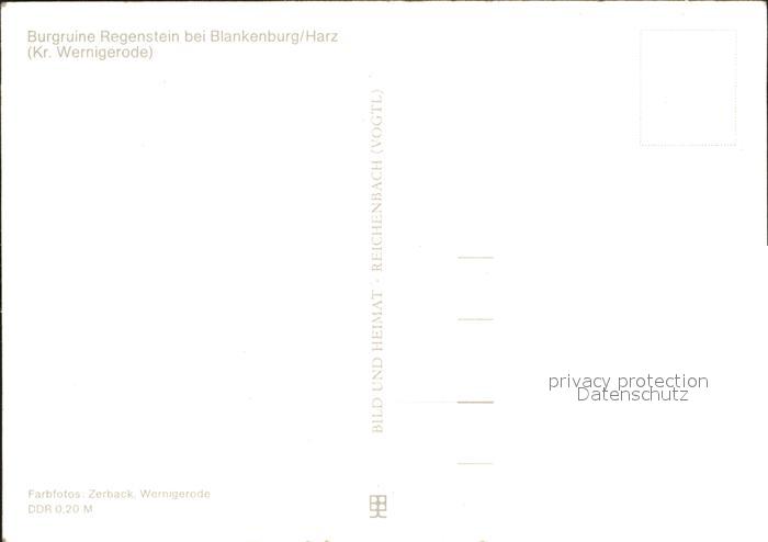 72401274 Blankenburg Harz Burgruine Regenstein postalisch nicht gelaufen Erhaltung siehe scans KatCode: 11110015085055