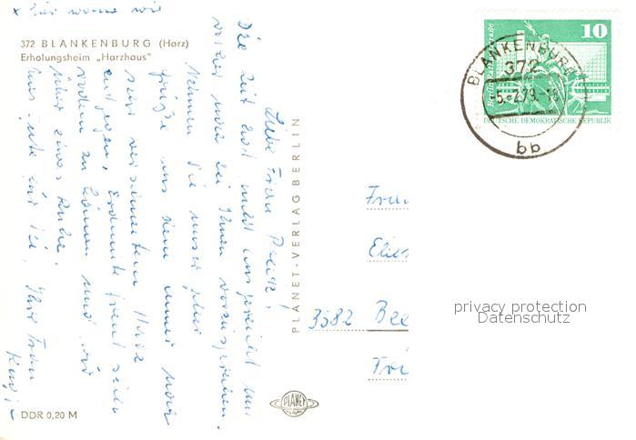 72927037 alte Postkarte Blankenburg Harz Erholungsheim Harzhaus postalisch gelaufen Erhaltung siehe scans [WerneD78] KatCode: 11110015085055