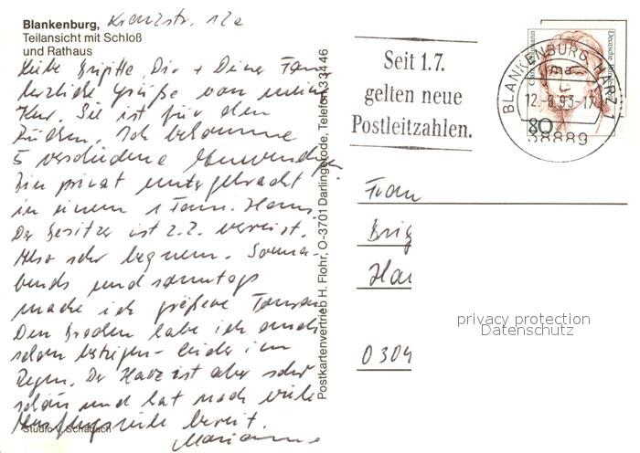 73571989 alte Postkarte Blankenburg Harz Fliegeraufnahme mit Schloss und Rathaus postalisch gelaufen Erhaltung siehe scans [WerneD78] KatCode: 11110015085055