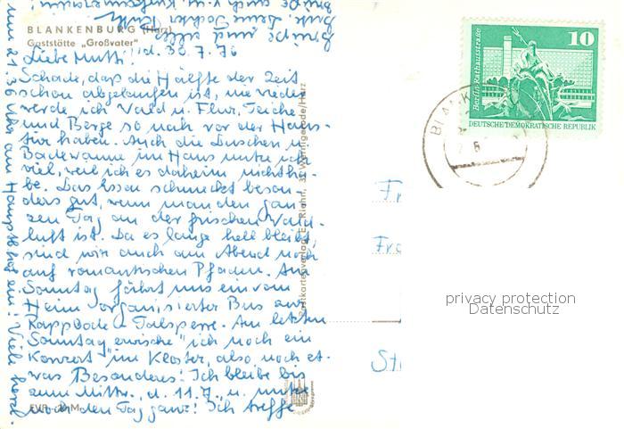 73760021 alte Postkarte Blankenburg Harz Gaststaette Grossvater postalisch gelaufen Erhaltung siehe scans [WerneD78] KatCode: 11110015085055