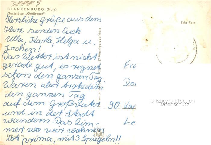 73750240 alte Postkarte Blankenburg Harz Gaststaette Grossvater postalisch gelaufen Erhaltung siehe scans [FriedD77] KatCode: 11110015085055