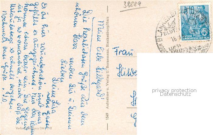 73763382 alte Postkarte Blankenburg Harz Gesamtansicht postalisch gelaufen Erhaltung siehe scans [LiesaD40] KatCode: 11110015085055