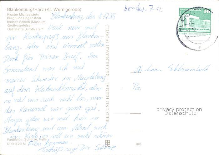 72338740 alte Postkarte Blankenburg Harz Kloster Michaelstein Burgruine Regenstein Schloss Museum Grossvaterfelsen Gaststaette postalisch gelaufen Erhaltung siehe scans KatCode: 11110015085055