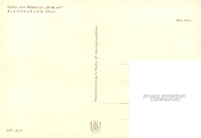 73027864 Blankenburg Harz Kultur Gaestehaus Glueck auf postalisch nicht gelaufen Erhaltung siehe scans [KathaD81] KatCode: 11110015085055
