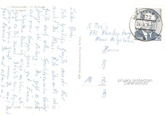 73100892 alte Postkarte Blankenburg Harz Kurhotel Thiepark postalisch gelaufen Erhaltung siehe scans [KathaD81] KatCode: 11110015085055