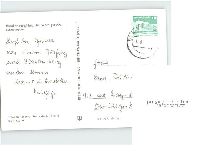 72110863 alte Postkarte Blankenburg Harz Luehnertorplatz postalisch gelaufen Erhaltung siehe scans KatCode: 11110015085055