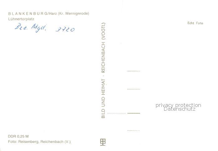 73757306 Blankenburg Harz Luehnertorplatz postalisch nicht gelaufen Erhaltung siehe scans [WerneD78] KatCode: 11110015085055
