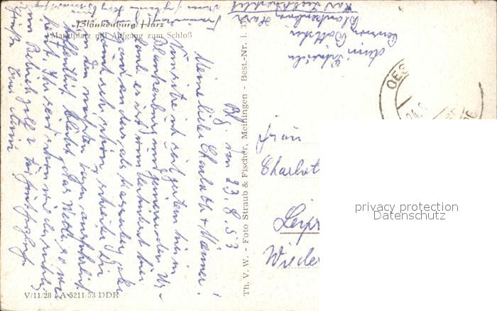 72471776 alte Postkarte Blankenburg Harz Marktplatz Aufgang zum Schloss postalisch gelaufen Erhaltung siehe scans KatCode: 11110015085055