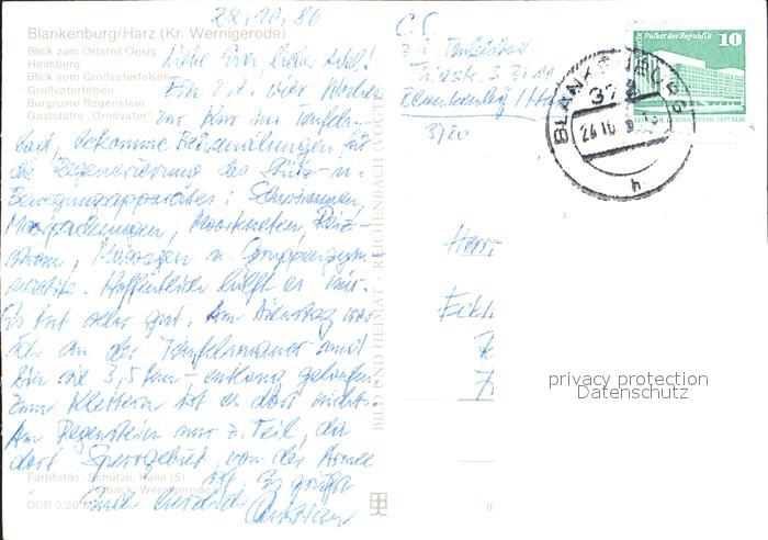 72290767 alte Postkarte Blankenburg Harz Oesig Heimburg Grossvaterfelsen postalisch gelaufen Erhaltung siehe scans KatCode: 11110015085055