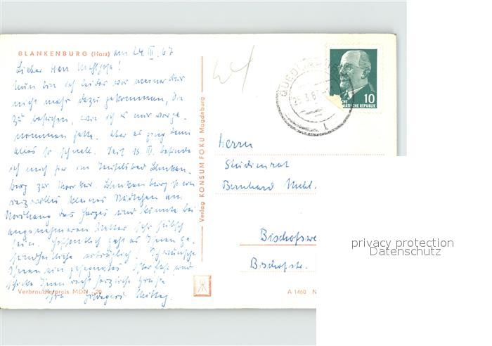 72412756 alte Postkarte Blankenburg Harz Panorama postalisch gelaufen Erhaltung siehe scans KatCode: 11110015085055