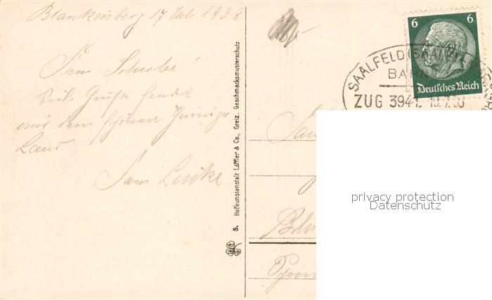 73821943 alte Postkarte Blankenburg Harz Panorama postalisch gelaufen Bahnpost Erhaltung siehe scans [WerneD78] KatCode: 11110015085055
