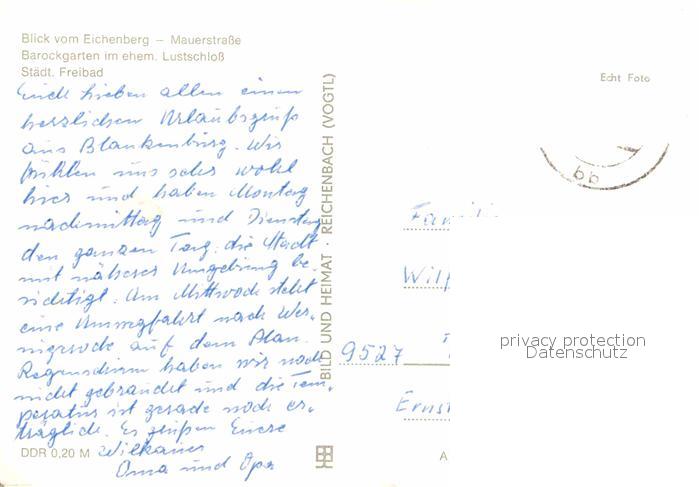 72703434 alte Postkarte Blankenburg Harz Panorama Blick vom Eichenberg Mauerstrasse Barockgarten ehem. Lustschloss Freibad postalisch gelaufen Erhaltung siehe scans [FriedD77] KatCode: 11110015085055