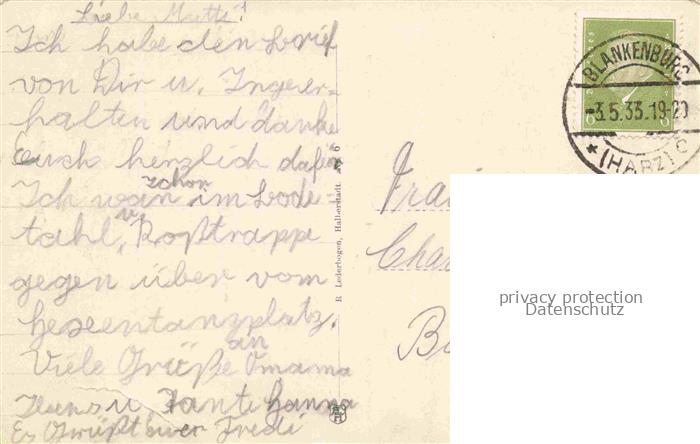 74036014 alte Postkarte Blankenburg Harz Panorama Schloss Rathaus Grossvater Teufelsmauer Regenstein Ziegenkopf postalisch gelaufen Erhaltung siehe scans [WerneD78] KatCode: 11110015085055