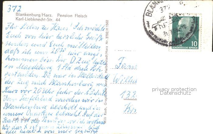 72113453 alte Postkarte Blankenburg Harz Pension Fleisch postalisch gelaufen Erhaltung siehe scans KatCode: 11110015085055
