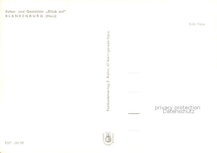 72927367 Blankenburg Harz Restaurant Kurstaette Glueck auf postalisch nicht gelaufen Erhaltung siehe scans [LiesaD40] KatCode: 11110015085055