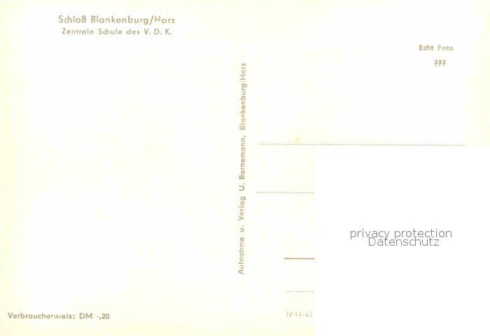 72729583 Blankenburg Harz Schloss Schule des VDK Winterpanorama postalisch nicht gelaufen Erhaltung siehe scans [FriedD77] KatCode: 11110015085055
