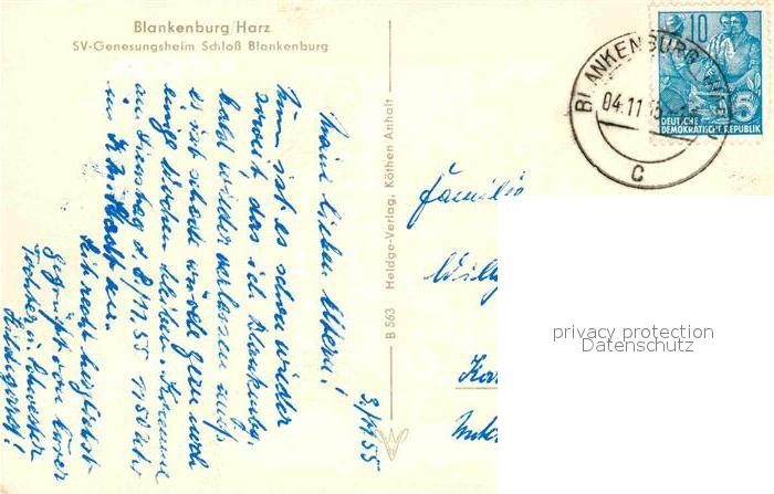 72699589 alte Postkarte Blankenburg Harz SV-Genesungsheim Schloss Blankenburg postalisch gelaufen Erhaltung siehe scans [LiesaD40] KatCode: 11110015085055
