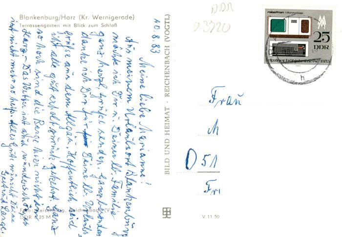 73947299 alte Postkarte Blankenburg Harz Terrassengarten mit Schlossblick postalisch gelaufen Erhaltung siehe scans [WerneD78] KatCode: 11110015085055