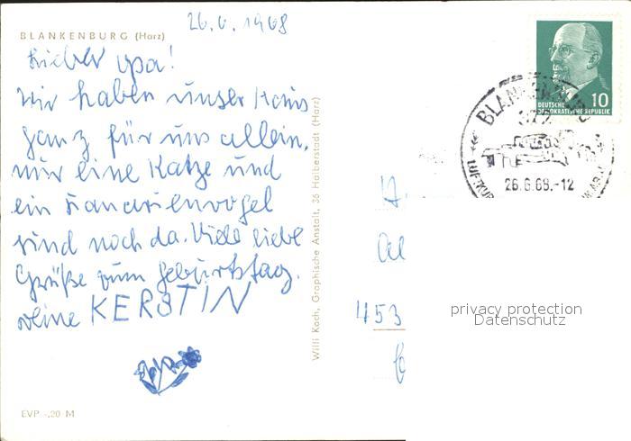 72114548 alte Postkarte Blankenburg Harz Totalansicht postalisch gelaufen Erhaltung siehe scans KatCode: 11110015085055