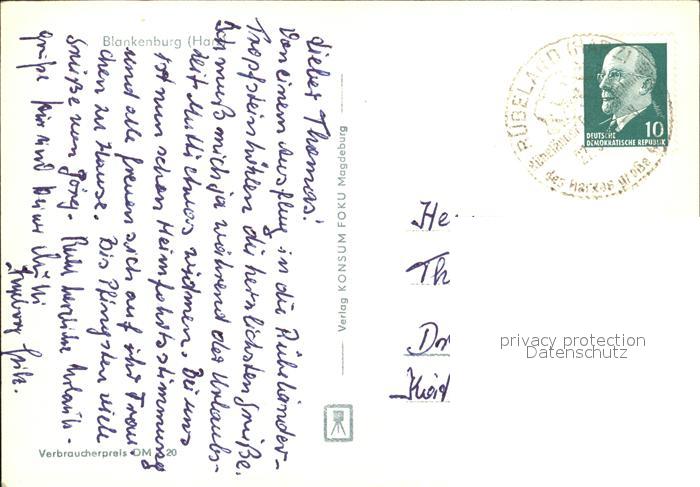 72402391 alte Postkarte Blankenburg Harz Totalansicht postalisch gelaufen Erhaltung siehe scans KatCode: 11110015085055