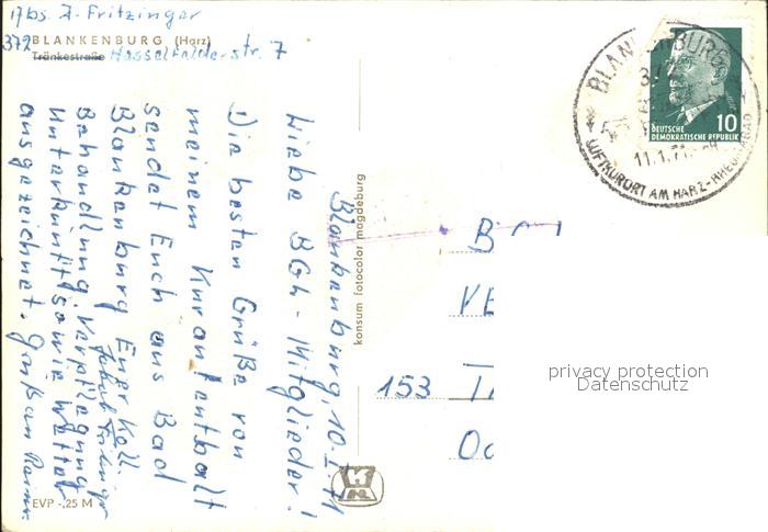 72273382 alte Postkarte Blankenburg Harz Traenkestrasse postalisch gelaufen Erhaltung siehe scans KatCode: 11110015085055
