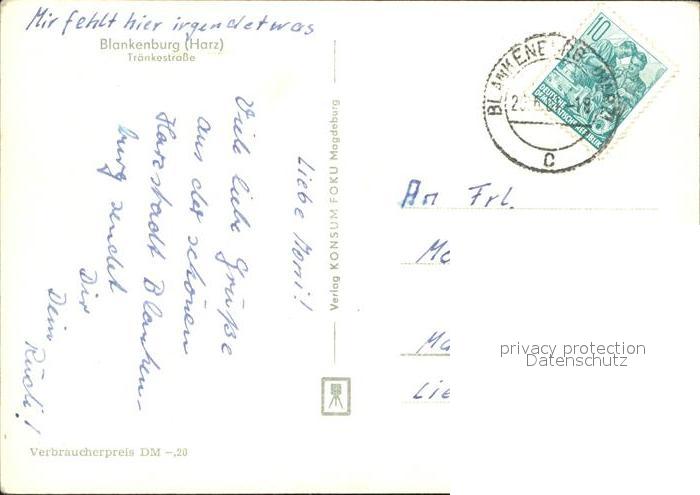 72061463 alte Postkarte Blankenburg Harz Traenkestrasse postalisch gelaufen Erhaltung siehe scans KatCode: 11110015085055