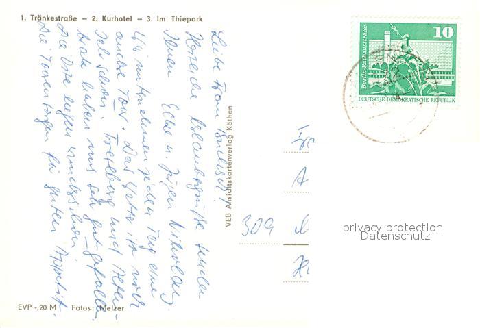 73044126 alte Postkarte Blankenburg Harz Traenkestrasse Kurhotel Im Thiepark postalisch gelaufen Erhaltung siehe scans [WerneD78] KatCode: 11110015085055