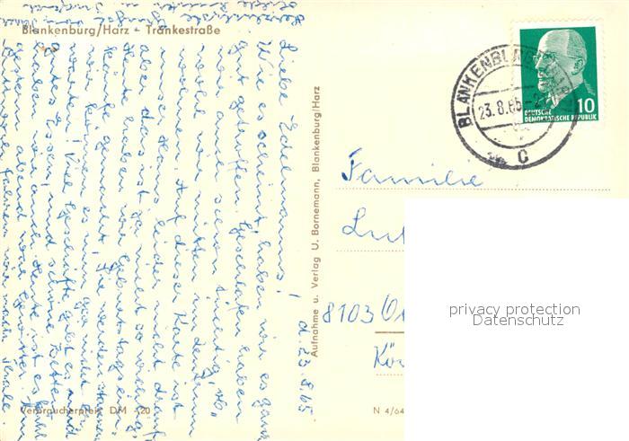 73139453 alte Postkarte Blankenburg Harz Trankestrasse postalisch gelaufen Erhaltung siehe scans [NatalD47] KatCode: 11110015085055