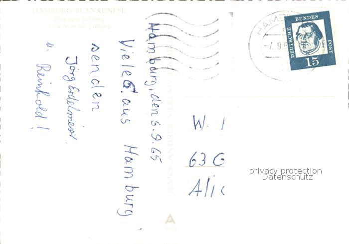 72393933 alte Postkarte Blankenese Hamburg Blick vom Suellberg postalisch gelaufen Erhaltung siehe scans KatCode: 11110002000000