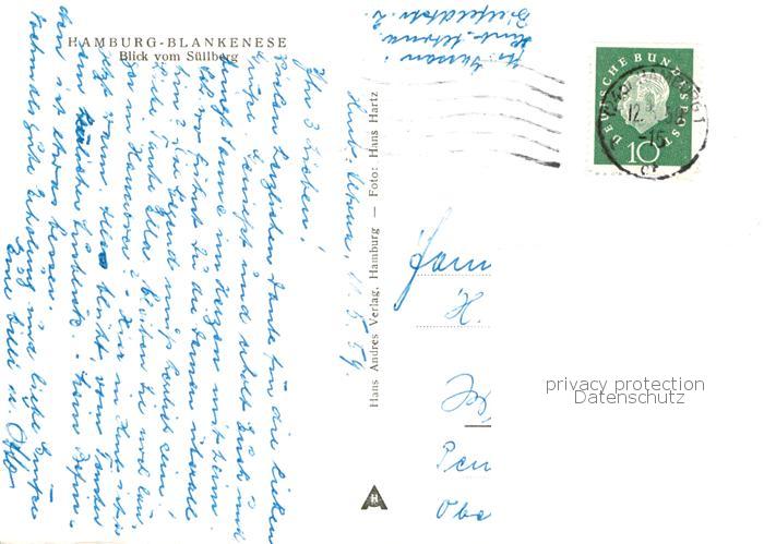 73810128 alte Postkarte Blankenese Hamburg Blick vom Suellberg postalisch gelaufen Erhaltung siehe scans [FriedD77] KatCode: 11110002000000